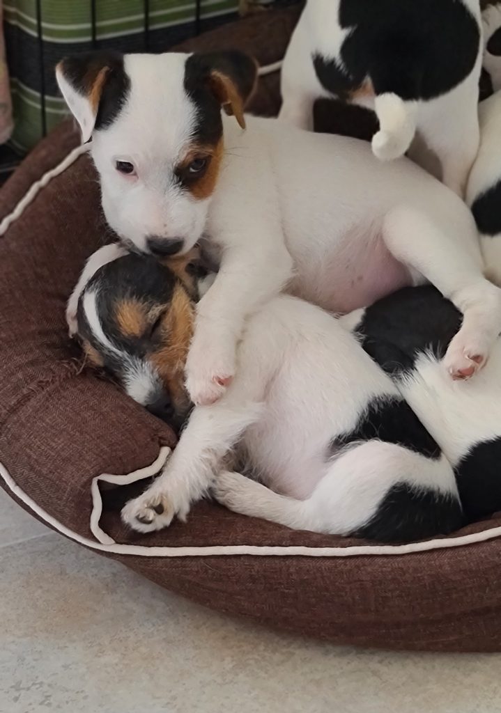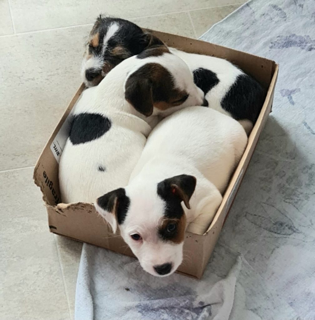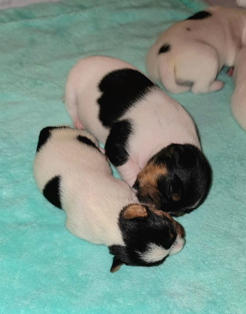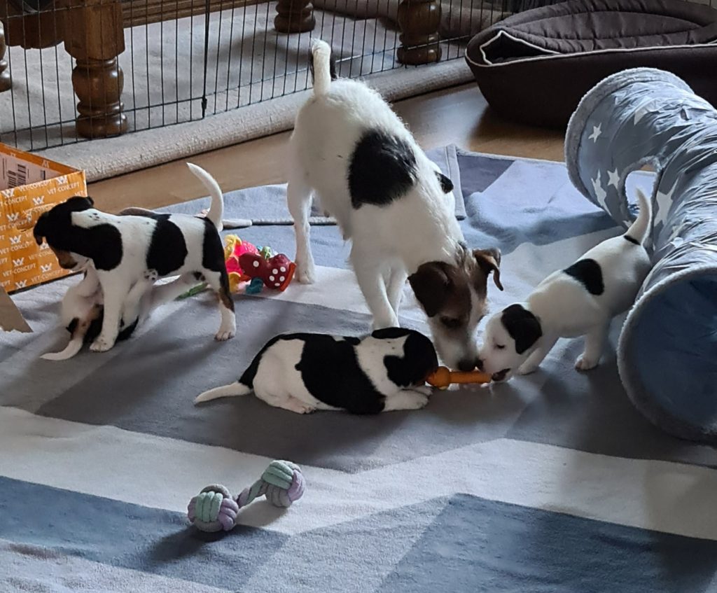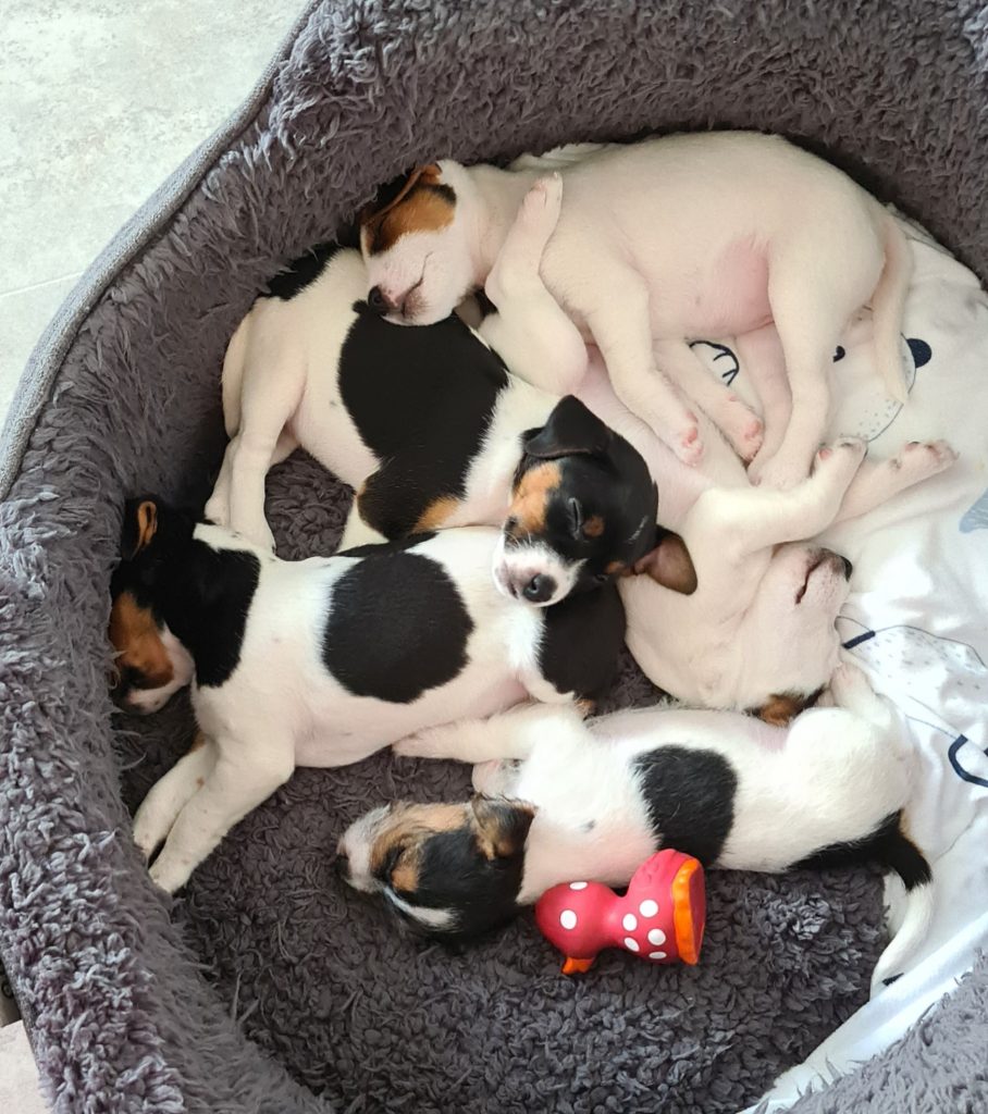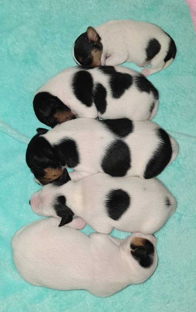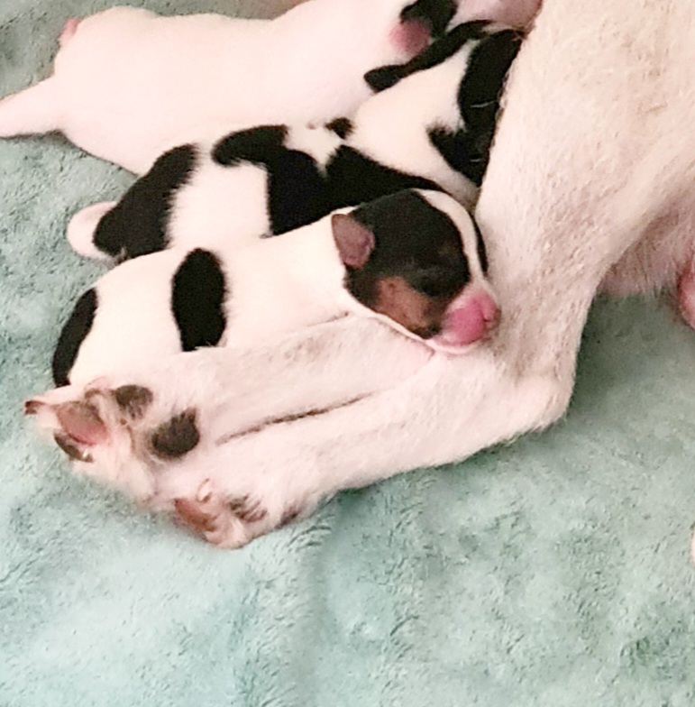 Am Montag hat unsere Tilda ihren E-Wurf geboren. Es war, wie schon von ihr gewohnt 🙂 , eine unkomplizierte Geburt und wir freuen uns über 5 gesunde, hübsche Terriermädchen.